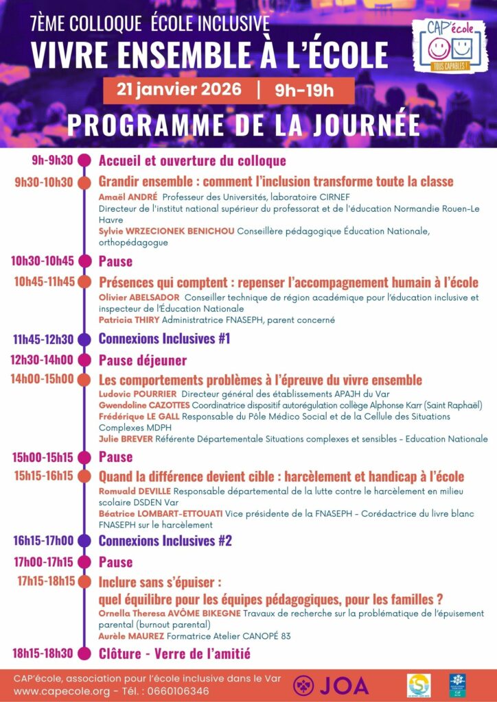 Le 7e colloque CAP’école aura lieu le mercredi 21 janvier 2026, au Casino Joa de La Seyne-sur-Mer.