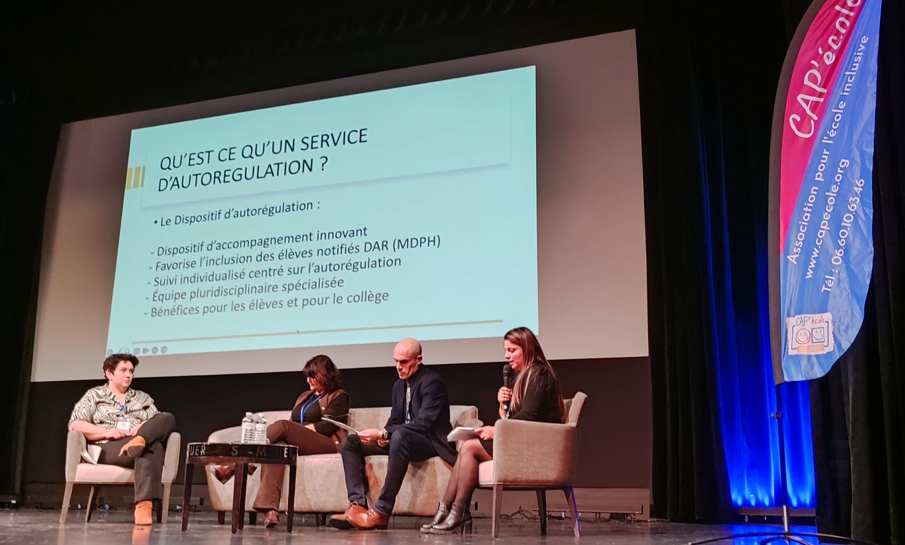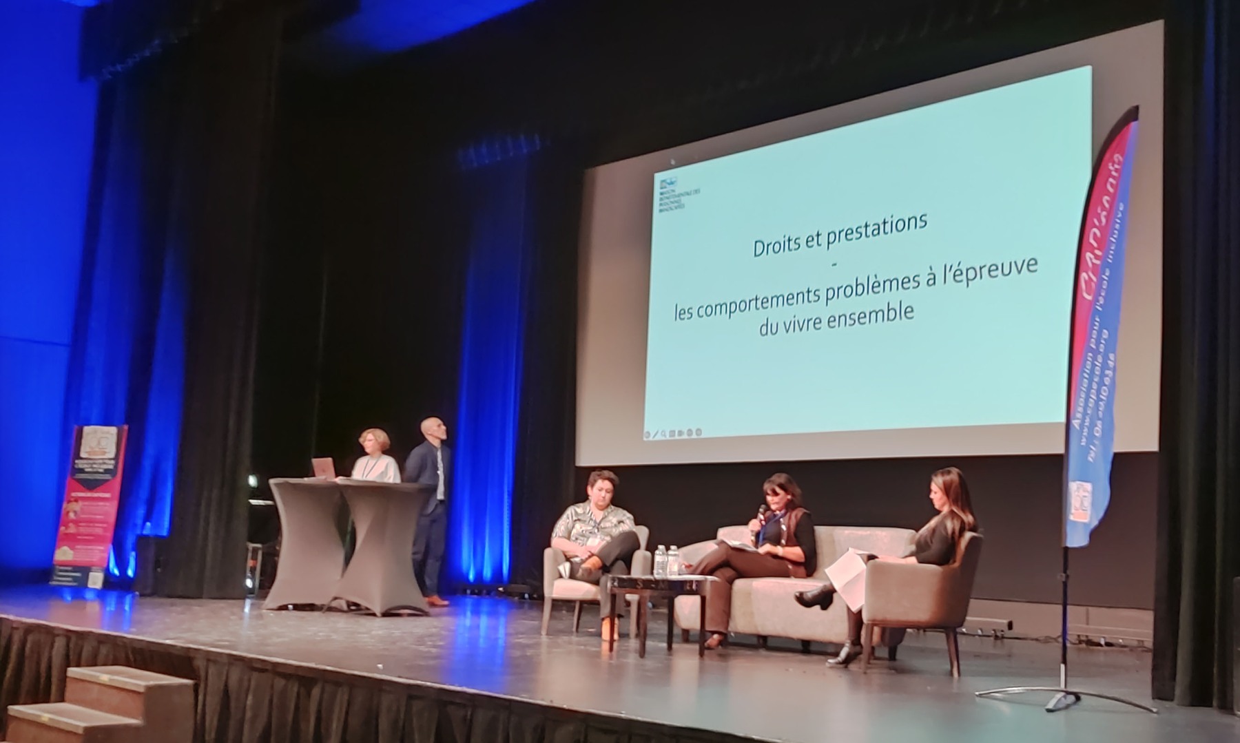 Les échanges portés par Ludovic Pourrier, Gwendoline Cazottes, Frédérique Le Gall et Julie Brever sur la question des « comportements problèmes à l’épreuve du vivre ensemble » ont rappelé la définition et les causes multiples des comportements problèmes et ont présenté le protocole départemental d’accompagnement des personnels confrontés à des comportements d’élèves perturbateurs et/ou violents. Le DAR (Dispositif d’Auto Régulation) et l’instruction d’un dossier MDPH ont également été présentés.
