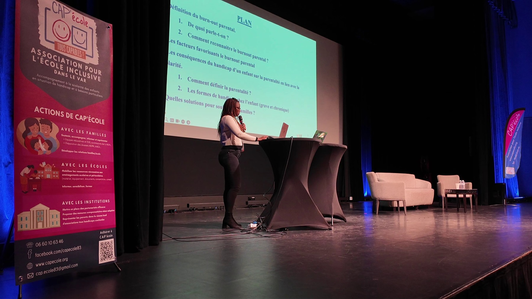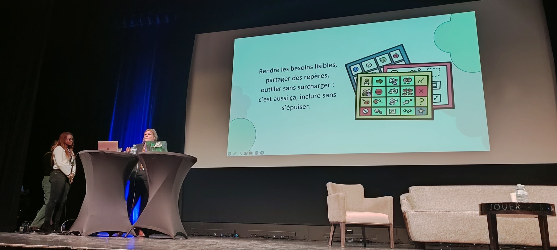 Enfin, sur le thème « inclure sans s’épuiser : quel équilibre pour les équipes pédagogiques, pour les familles ? », Ornella Theresa Avôme Bikegne a présenté ses recherches sur le burn-out parental et Aurèle Maurez a présenté des solutions concrètes pour ne pas s’épuiser, que l’on soit parent, élève ou enseignant, en agissant sur l’environnement, en s’outillant, en adoptant sa posture et en réfléchissant en collaboration avec tout le monde.