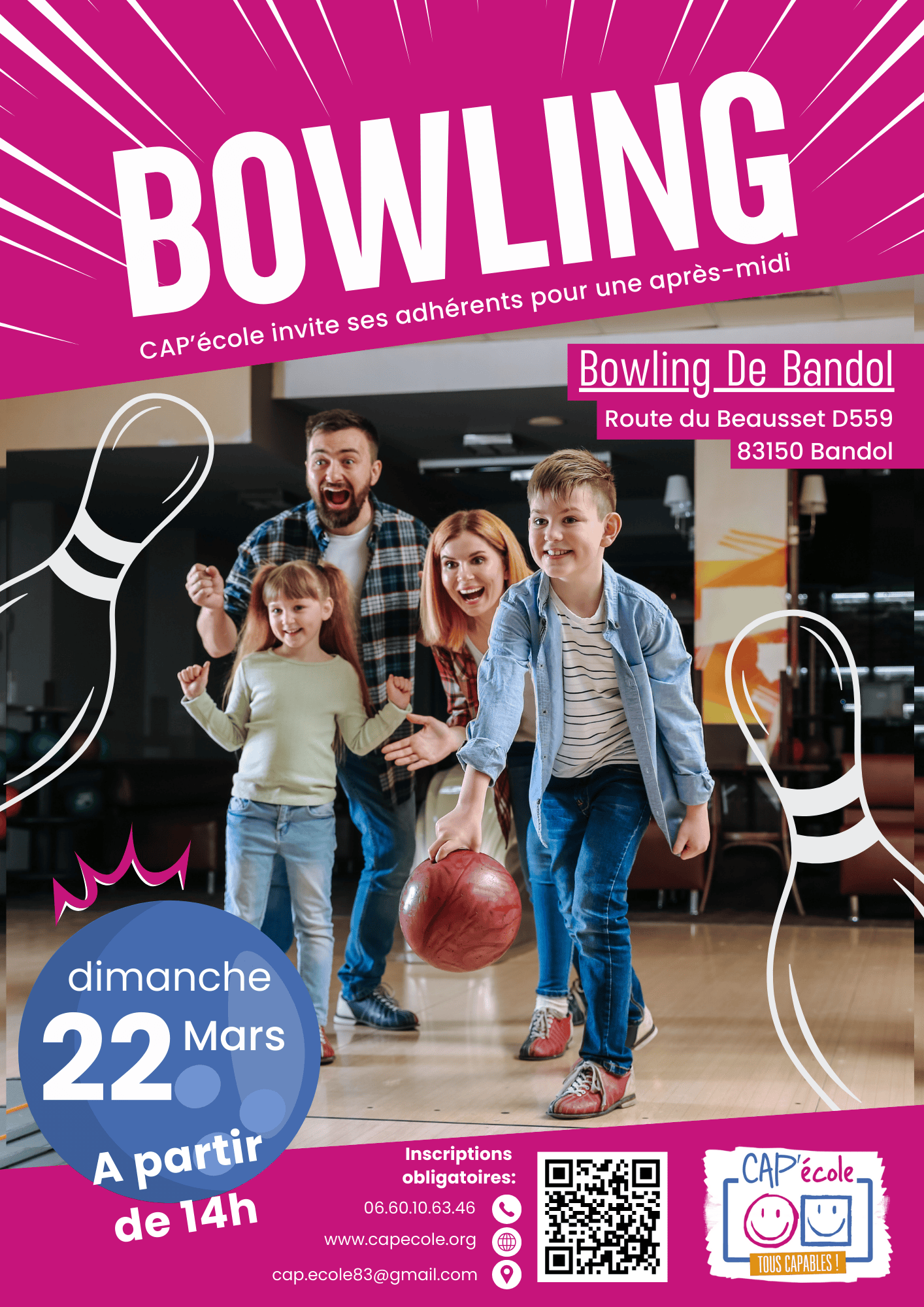 CAP’école vous propose un moment convivial à partager en famille au bowling de Bandol !